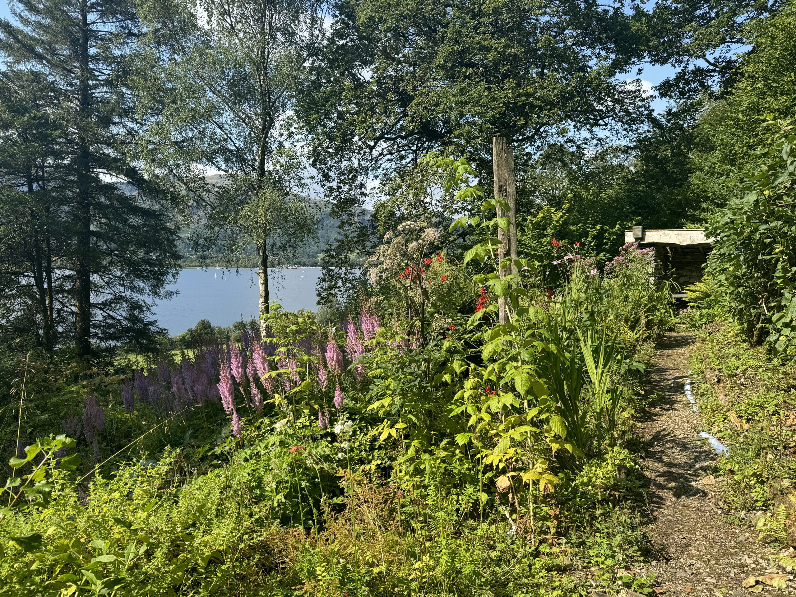 There is also the High Walk on a raised level, offering great views westwards over Coniston Water.