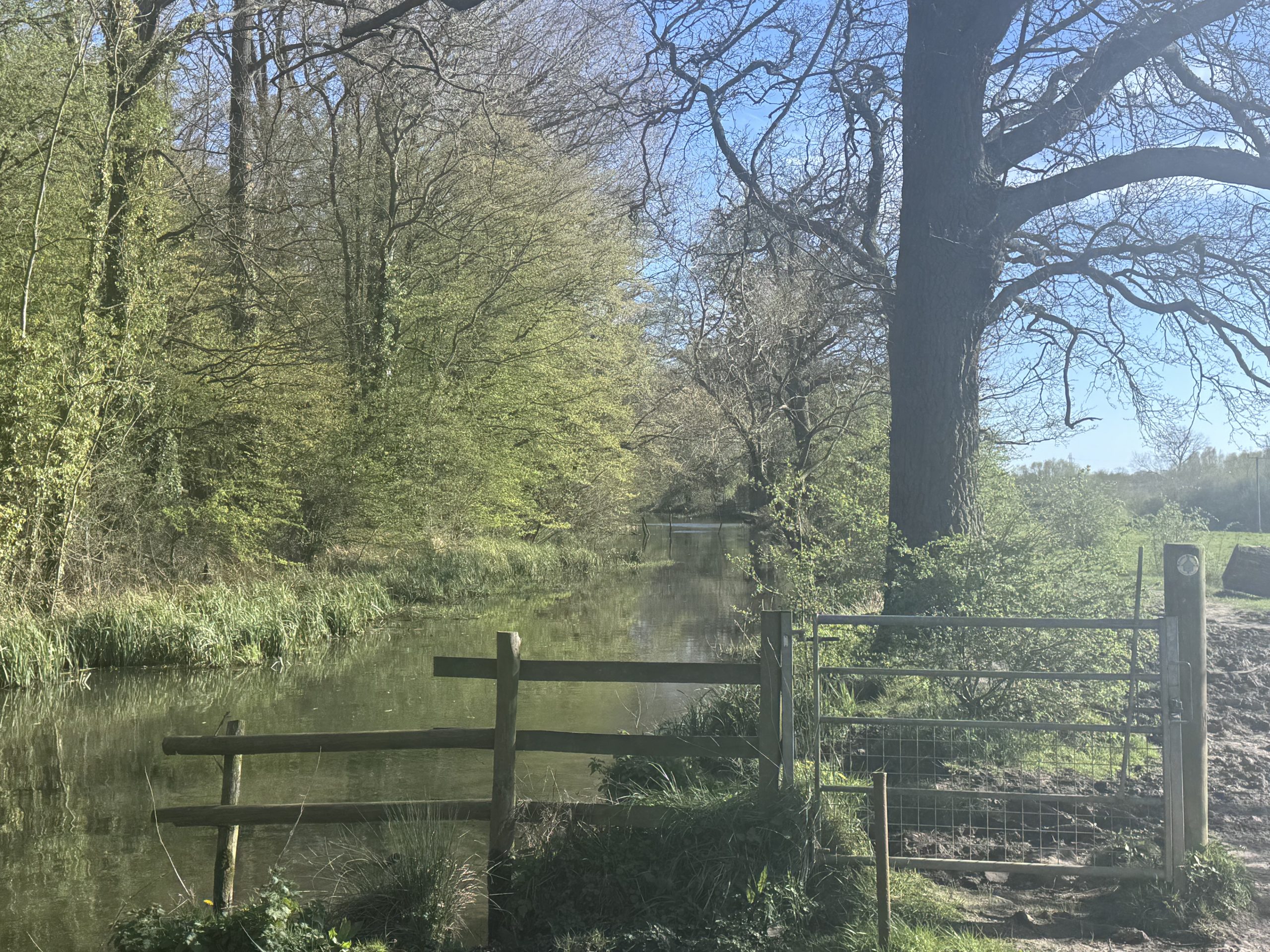 Return the same way until you reach the entrance the woodland. Here turn right over the bridge and then follow the footpath on the opposite side of the woodland, with the old canal on the left.